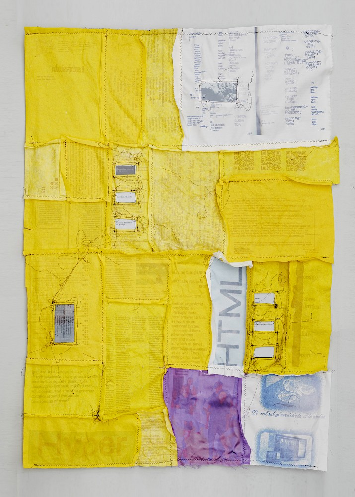 Hackers & Designers, a collective from Amsterdam, designs alternative tools for making information public. The handmade patchwork poster they have created is a counter-design to the impersonal and sleek aesthetics of technical surfaces that feign neutrality. The textile poster is “seamfulness”, because the seams are visible, and it is made from recycled materials sourced from the various members of the H&D collective.