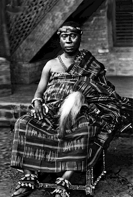 Asantehene Agyeman Prempeh I wearing an Oyokoman kente cloth. 1926