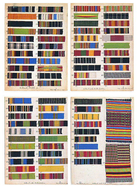 Pattern number 92, consisting of a simpler weave of differently coloured stripes, titled Kradie, which means ‘the Satisfied Soul’ is named after an Ashanti proverb.
