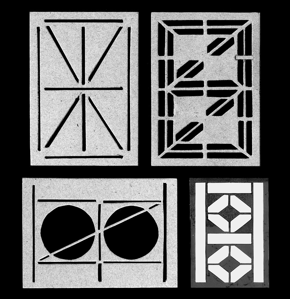 Karl Nawrot, Drawing Templates (study), 2008 – 2009, cardboard. Karl Nawrot creates type, illustrates, and draws abstract graphic compositions. He uses techniques usually associated with the architectural process. In order to understand what he’s looking for he builds physical narratives. In this way the final product is linked to a story, a fiction, creating the possibility to engage with something that has the potential to become.