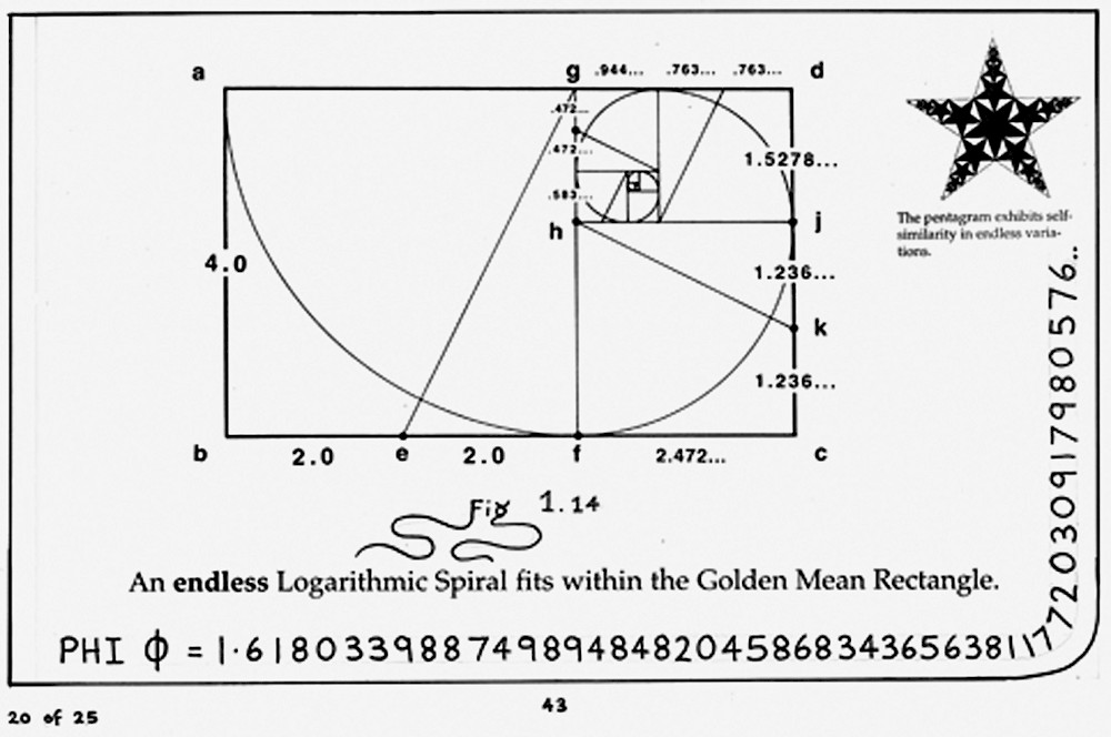 The golden section is usually cited as the most successful geometrical construction that can produce a beautiful lay-out. As it is a geometrically derived form, it can be drawn with a setsquare and a compass. By adding the lengths of the long and short edges it is possible to arrive at the next measurement in the sequence to give a bigger rectangle of the same proportions (and in reverse). Adding two numbers to find the next in a series is also the basis of the number progression of the Fibonacci sequence, named after the Italian mathematician who first identified it in many natural forms. A combination of the golden section and Fibonacci sequence was often used to determine the overall proportion of the page.