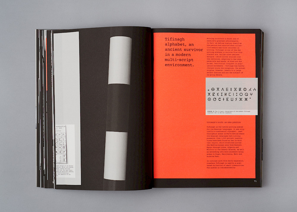 While today’s selection of Tifinagh typefaces is larger than ever, the range is still far from comprehensive. As this ancient alphabet acquires an increasingly presence in the everyday lives of the Amazigh people, its typefaces will need to fulfil a sorts on new needs and practical requirements. This presents a whole new world to explore – as well as a lot of work that still needs to be done. Hopefully, the different Amazigh associations, institutions and local authorities will continue to develop and safeguard this typographic and cultural treasure.