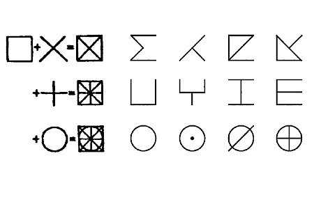Pichler [19] refers to the ‘complete sign’, a concept coined by Frutiger [20] to explain the underlying structure in the ancient Libyco-Berber script. It is a combination of four elementary signs: the line, the cross, the square and the circle. More than 200 different signs can be created within this basic structure. Notably, most of the characters that form the Tifinagh script – ancient and current – fit into this grid.