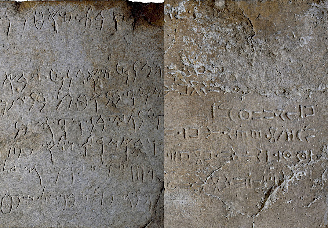 Classic bilingual inscription found at the Mausoleum of Ateban in Dougga (Tunisia), dated around 146 BC. The inscription has been carved onto two friezes, one written in Punic (left) and the other in Libyco-Berber (right).